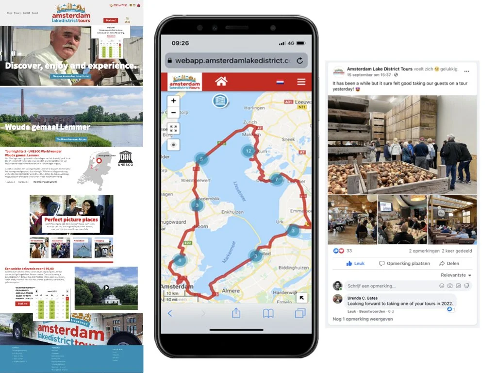 We ontwikkelden het positionerende concept Amsterdam Lake District: een naam die direct herkenbaar is voor buitenlandse reizigers en tegelijk nieuwsgierig maakt naar een nieuw gebied. Rond dit verhaal werd een aanbod van kleinschalige, persoonlijke tours gebouwd waarin landschap, historie en lokale beleving centraal staan. Zo ontstond een duidelijke brug tussen Amsterdam en Friesland. In een speelse vrolijke stijl die aansluit op de tourist beleving.