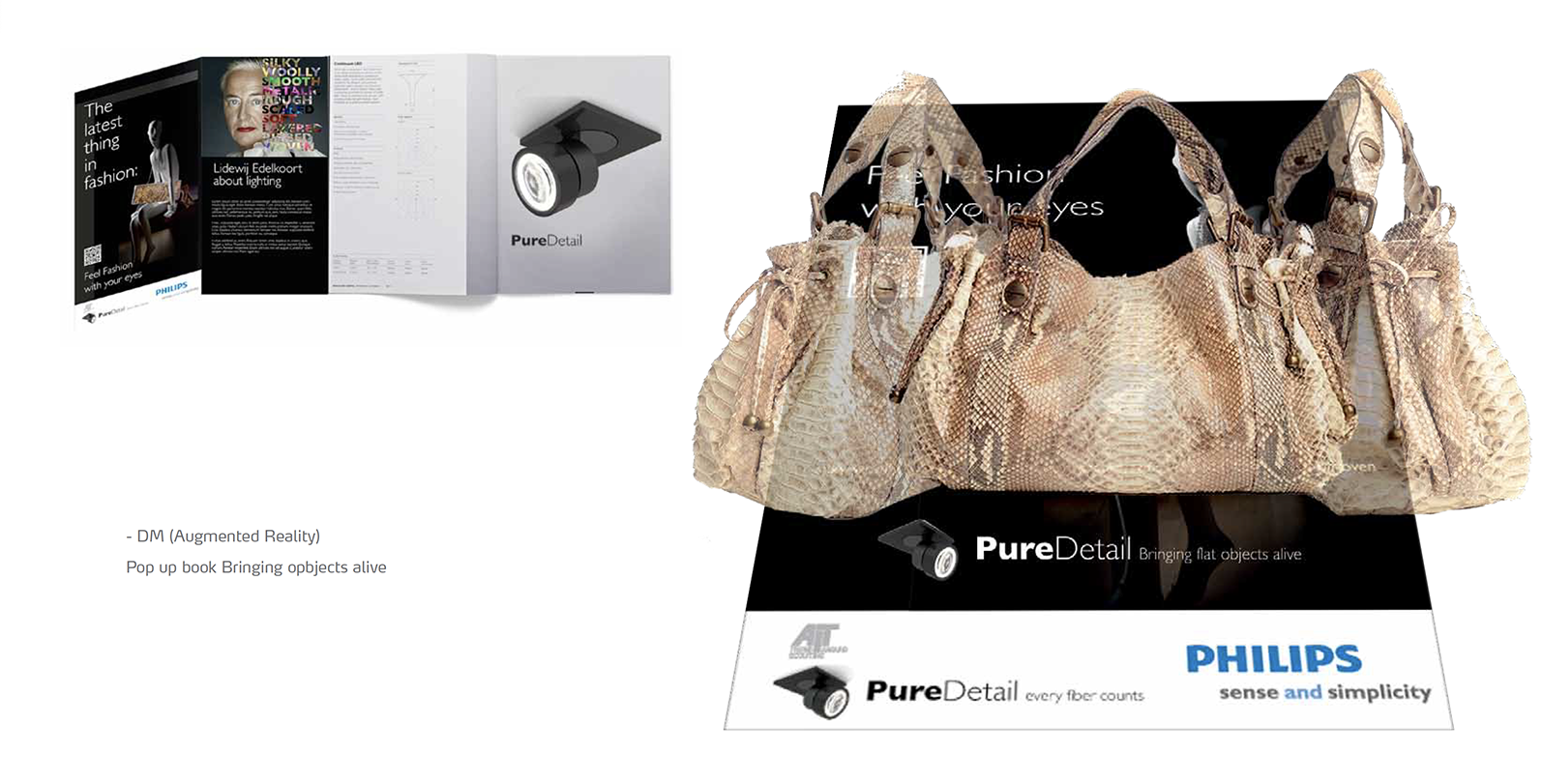 We ontwikkelden een introductiecampagne waarin beleving voorop stond. Het kernidee textuur is overal vormde de basis voor het communicatiethema Feel Fashion with your eyes. De visuele stijl was donker en stijlvol, waarbij materialen als zijde, wol, leer en metaal bijna tastbaar werden door het licht van PureDetail. Seeing is believing werd het uitgangspunt: demonstraties, inspirerende content, beurzen en events lieten doelgroepen zelf ervaren wat het licht doet. Ambassadeurs uit de licht- en retailwereld versterkten de geloofwaardigheid en brachten het verhaal tot leven in de praktijk.