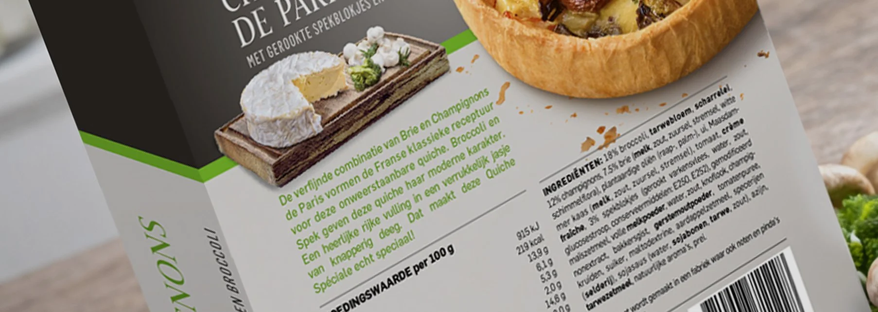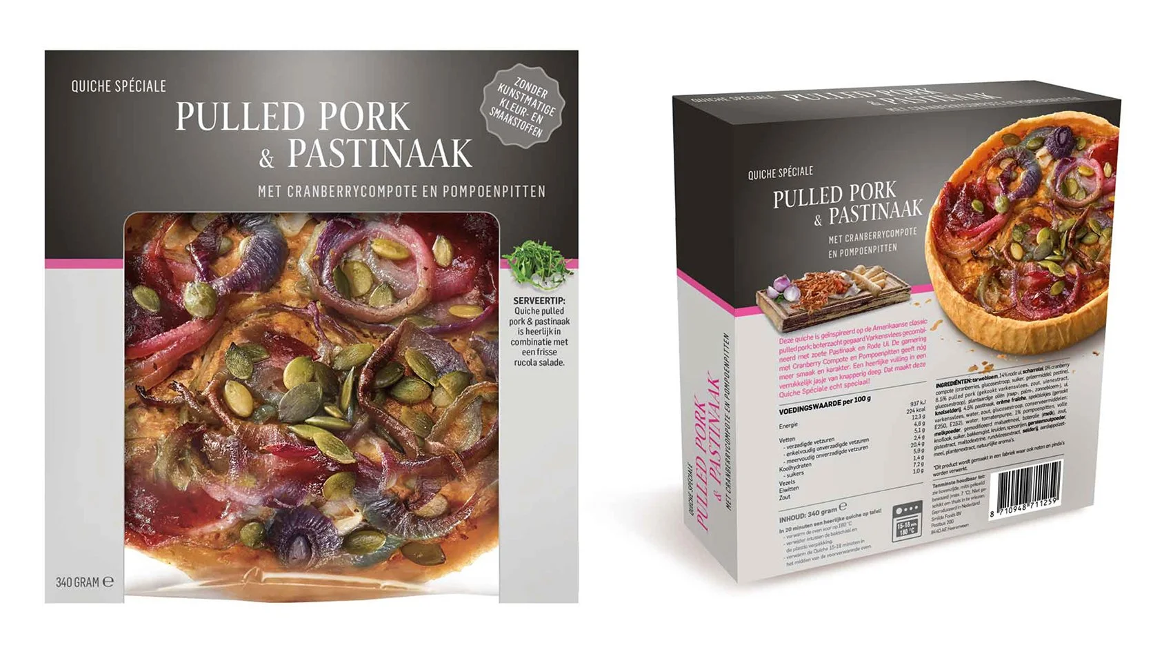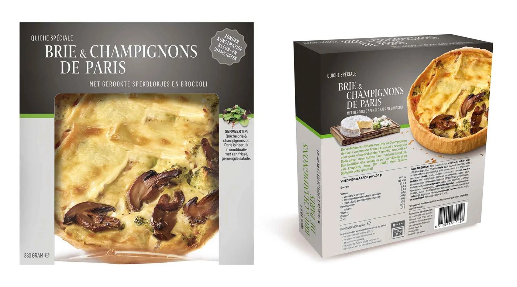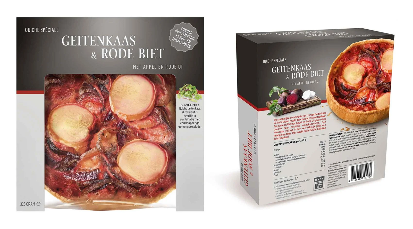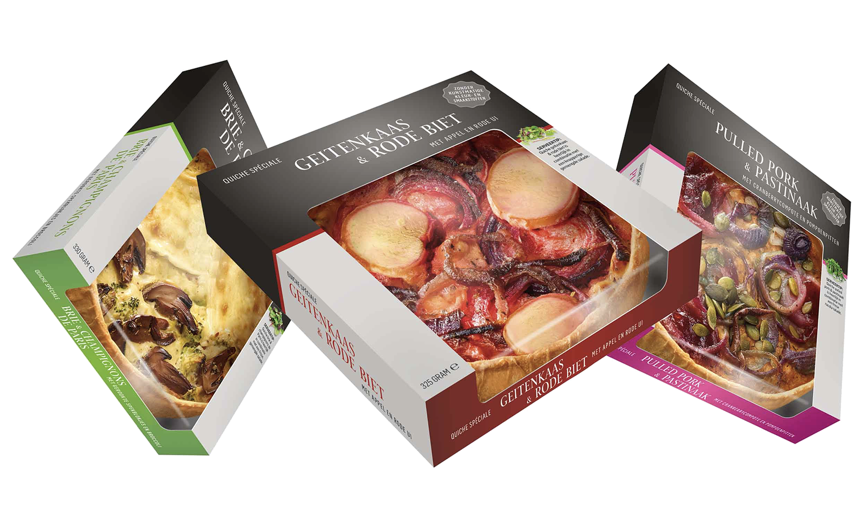 Een consistente en onderscheidende verpakkingslijn met sterke schapimpact en duidelijke navigatie tussen de varianten. Quiche Speciale oogt hoogwaardig, modern en smaakvol en nodigt uit om mee te nemen..