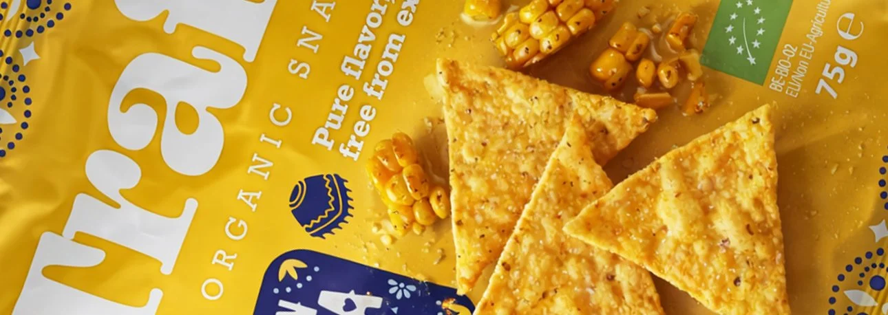 Trafo Chips oogt eigentijds, biologisch en aantrekkelijk een verpakking die uitnodigt om te pakken én te proeven.